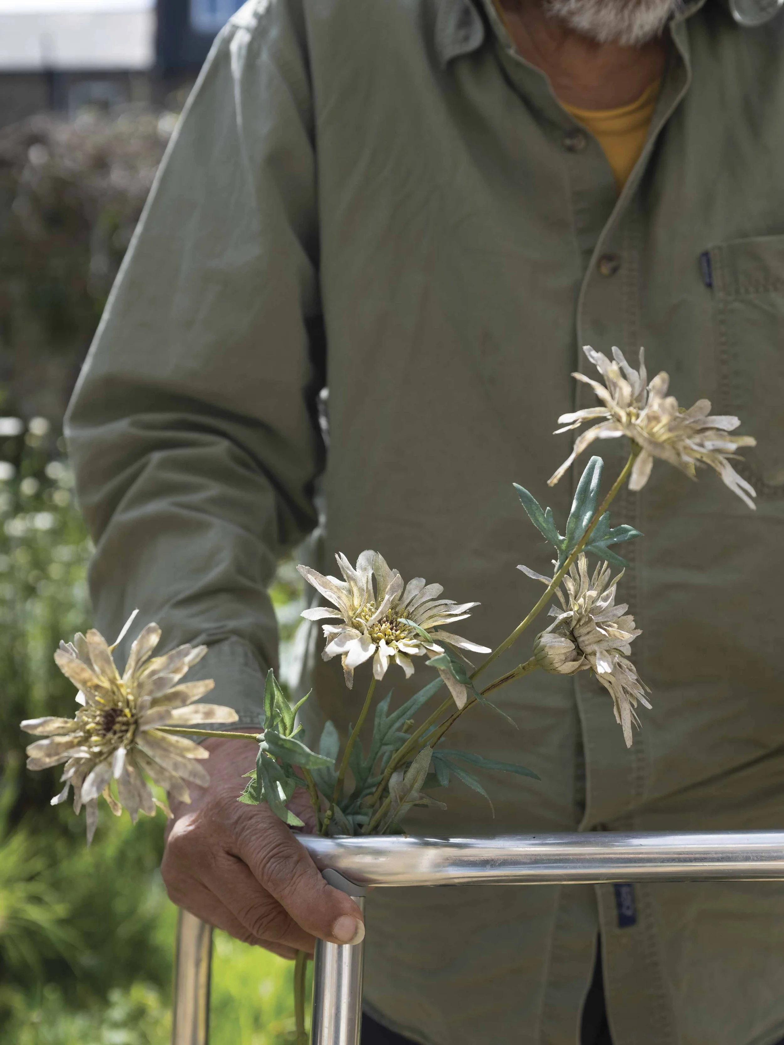 After closely observing how lonely and disorientating Alzheimer's disease can be, I wanted to find a new way to help rejuvenate his outgoing spirit. Set within his home and the hidden corners of his overgrown garden, this body of work visually explores and reflects the duality of my Grandfather’s current confinement to the boundaryless life, previously lived beyond the garden wall.